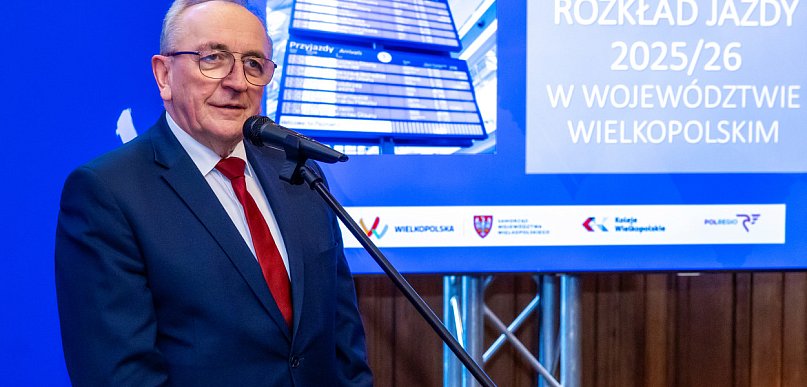 Na Dworcu Letnim w Poznaniu odbyła się dziś konferencja prasowa zorganizowana przez Urząd Marszałkowski Województwa Wielkopolskiego, poświęcona nowemu rozkładowi jazdy 2025/2026 oraz planom rozwoju regionalnych przewozów kolejowych. Spotkanie otworzył wicemarszałek województwa wielkopolskiego Wojciech Jankowiak, a szczegółową prezentację zmian i nowości przedstawił Robert Pilarczyk, dyrektor Departamentu Transportu UMWW.