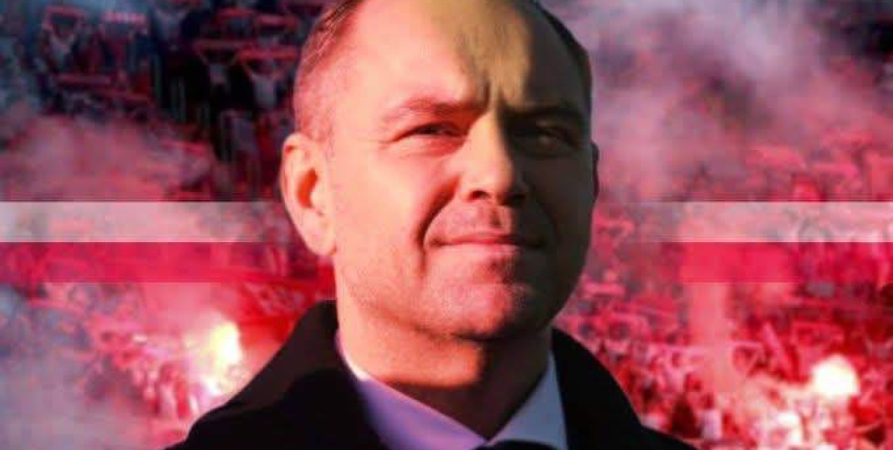 Karol Nawrocki udzielający "błogosławieństwa" wiernym mu hunwejbinom.