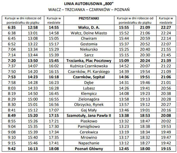 W dni robocze obsługiwane będą dwa kursy w każdym kierunku, natomiast w niedziele jeden. Autobusy nie będą kursować w soboty.