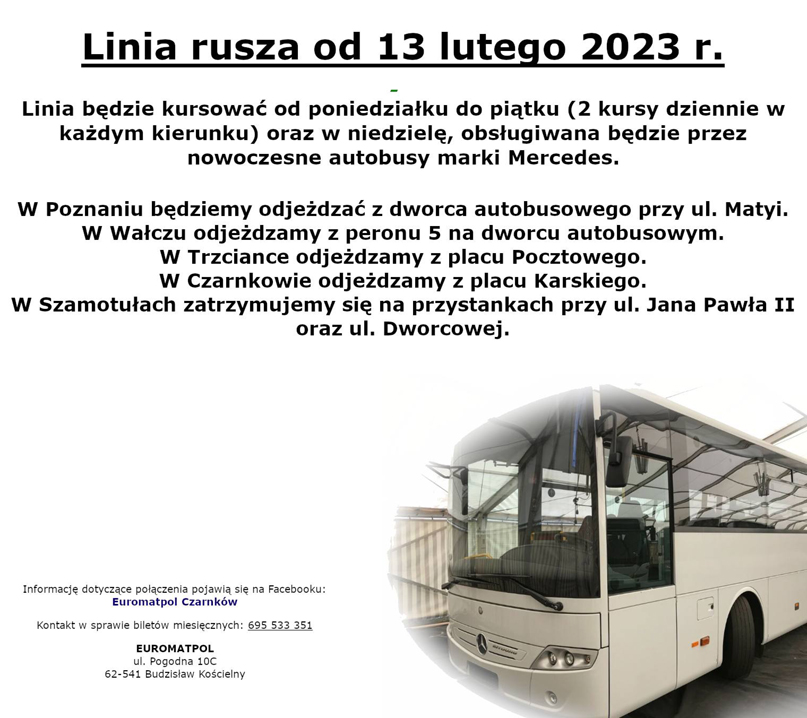 13 lutego firma Euromatpol uruchomi oczekiwane połączenie Wałcz - Trzcianka - Czarnków - Szamotuły - Poznań.