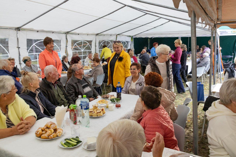 Aby każdy senior mógł wziąć udział w wydarzeniu, organizatorzy zapewnili dojazd autobusowy z pobliskich miejscowości. Na uczestników czekały zastawione stoły pełne domowych wypieków, grochówka, kiełbaski oraz wspólne ognisko, które sprzyjało rozmowom i integracji.