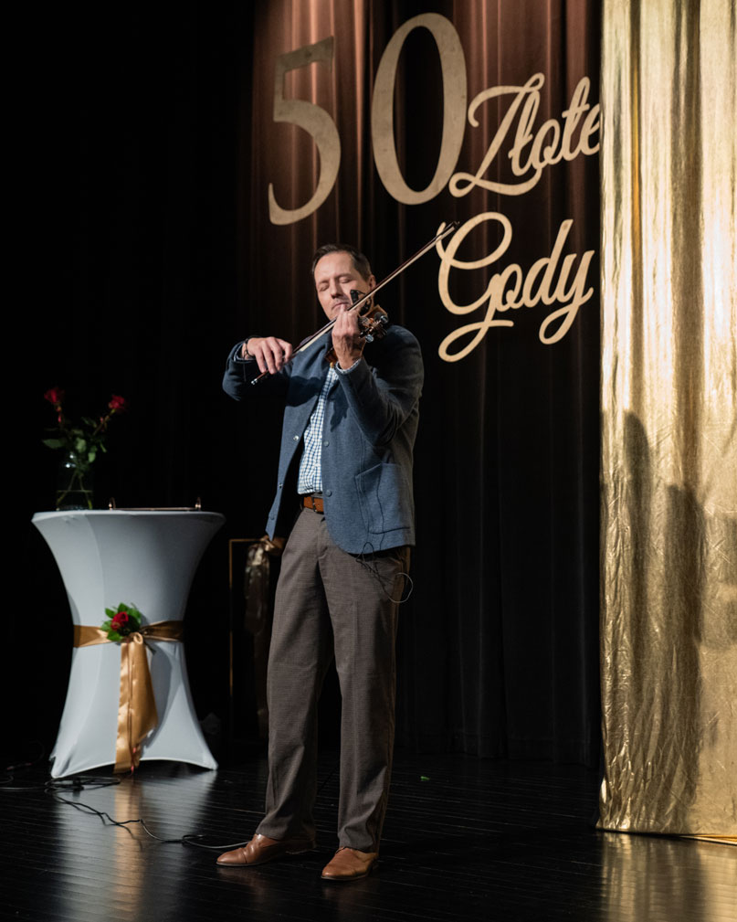 Uroczystość uświetnił występ wirtuoza skrzypiec Tomasza Żelaśkiewicza oraz występ najmłodszych, którzy zachwycili swoim występem, pełnym serdecznych życzeń dla zacnych Jubilatów. Wystąpiły sześciolatki - grupie „Jeżyki” z Gminnego Przedszkola w Wieleniu, pod kierunkiem wychowawcy Renaty Koryluk-Marciniak.
