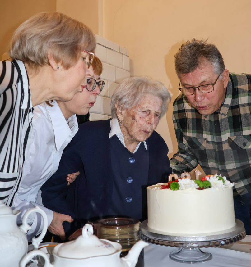 Podczas rozmów przy filiżance herbaty, wielokrotnie nawiązywano do bogatego i długiego życia Jubilatki, jej doświadczeń oraz wspomnień z minionych 100 lat. Zdjęcia rodzinne przywoływały mnóstwo wspomnień. Szanowna Jubilatka to osoba niezwykle spokojna, pogodna i delikatna dająca zawsze siłę i poczucie bezpieczeństwa całej rodzinie.