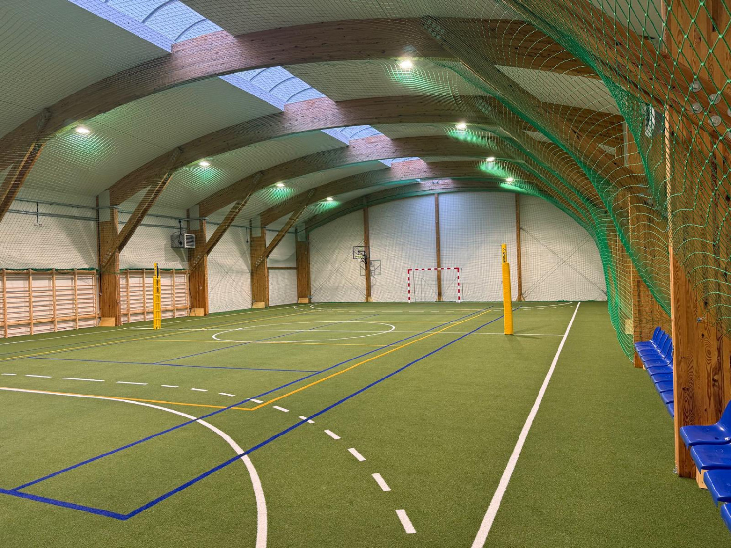 Przy szkole wybudowano halę sportową z boiskiem wielofunkcyjnym o wymiarach 42x21 m i zapleczem higieniczno-sanitarnym. Wykonana została z drewna klejonego, a dach ma konstrukcję łukową.