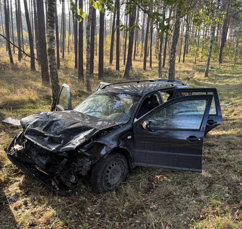 1 listopada tuż po godzinie dziewiątej rano kierujący samochodem Volkswagen Bora wypadł z jezdni i zjechał ze skarpy aż na krawędź lasu.