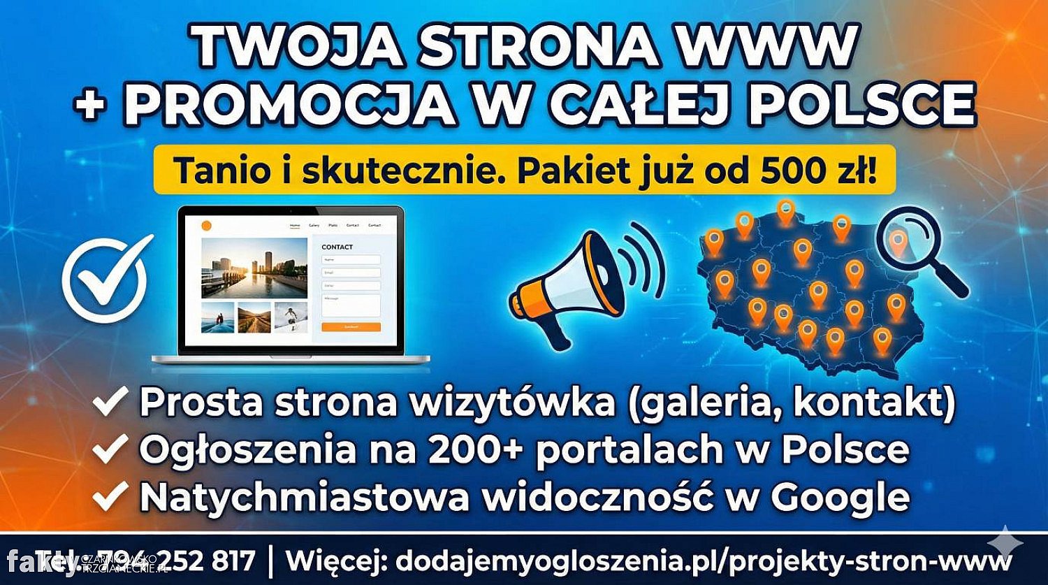 Tanio i skutecznie - Twoja strona + promocja w całej Polsce w jednym pakiecie.